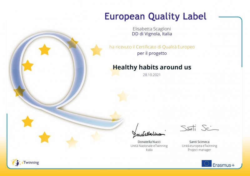 Progetti premiati con il “Certificato di Qualità Europeo (EQL)” per l’eccellente lavoro svolto dalle docenti e dagli studenti della Direzione didattica di Vignola.